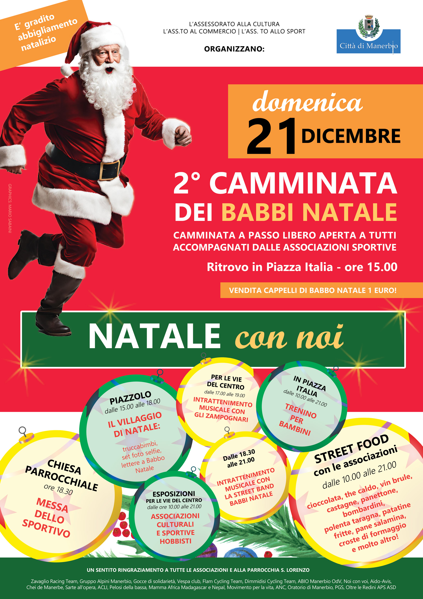 Il Comune di Manerbio organizza la seconda camminata dei Babbi Natale per le vie di Manerbio, aperta a tutti! E non mancherà tanto divertimento, musica e street food per le via del centro!
