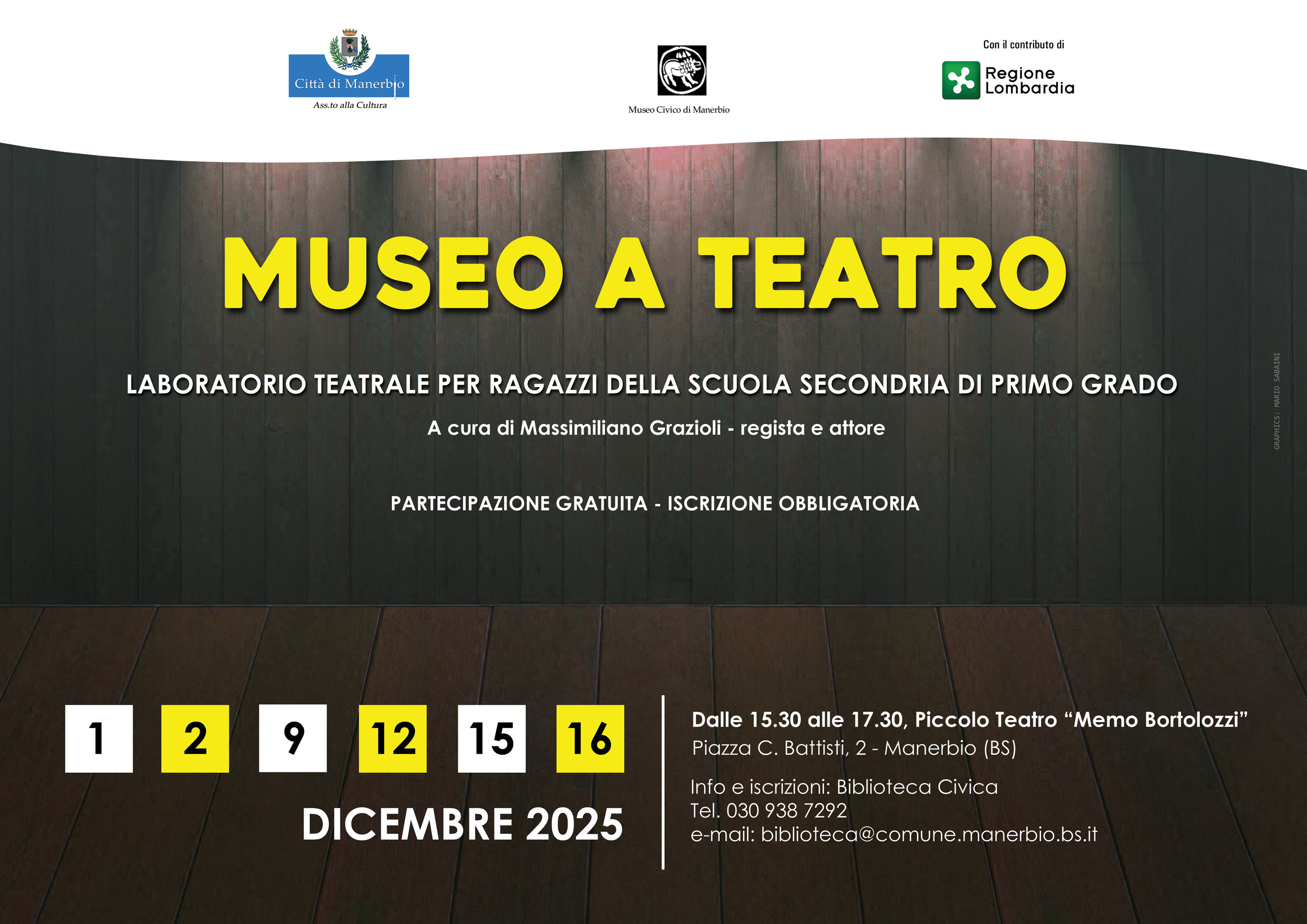 L'iniziativa promossa dall'Assessorato alla Cultura del Comune di Manerbio nell'ambito del progetto "Museo fuori di sè", viene realizzata grazie al contributo di regione Lombardia.