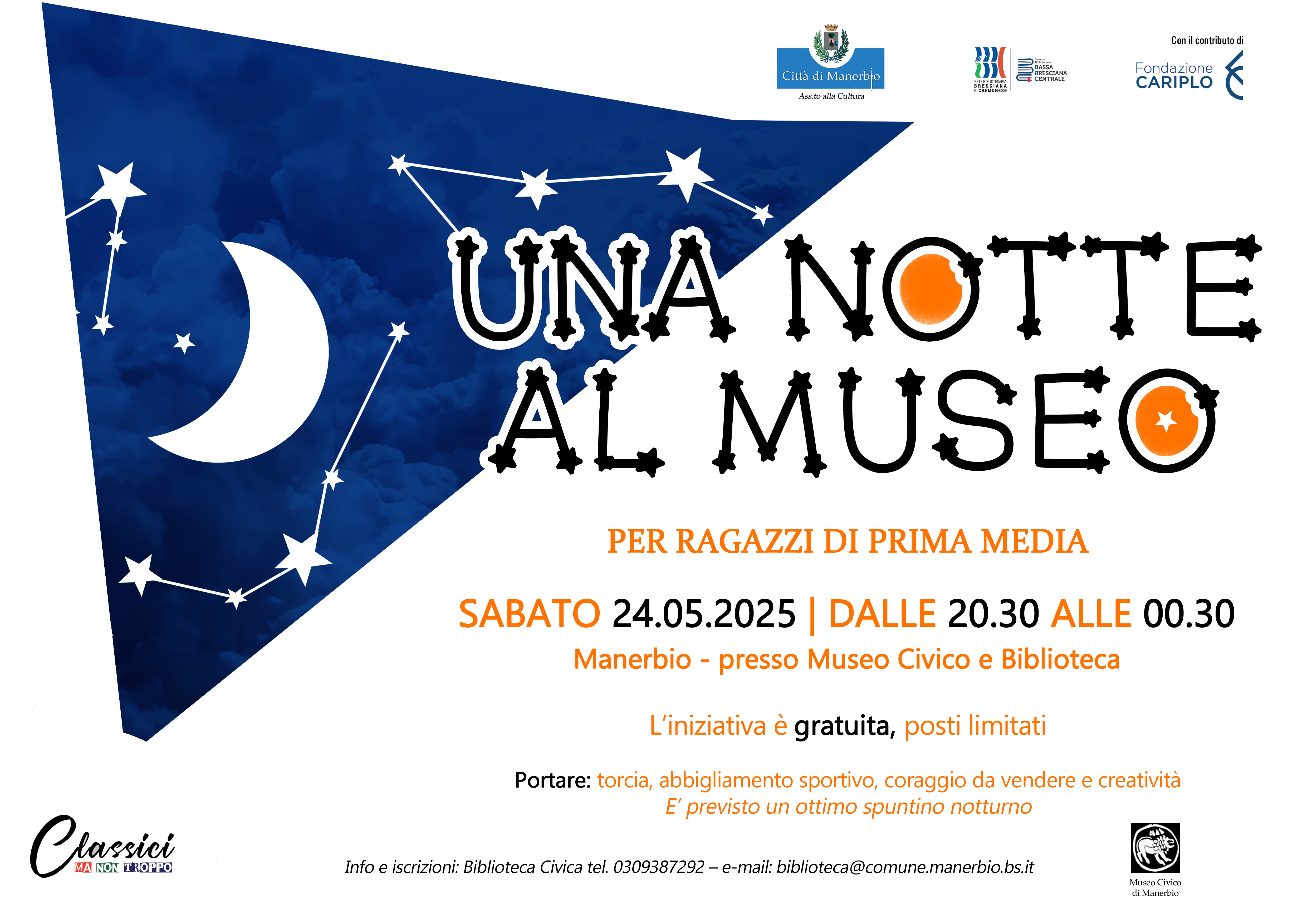 Una notte da trascorrere al museo civico di Manerbio, dedicata ai ragazzi di prima media
