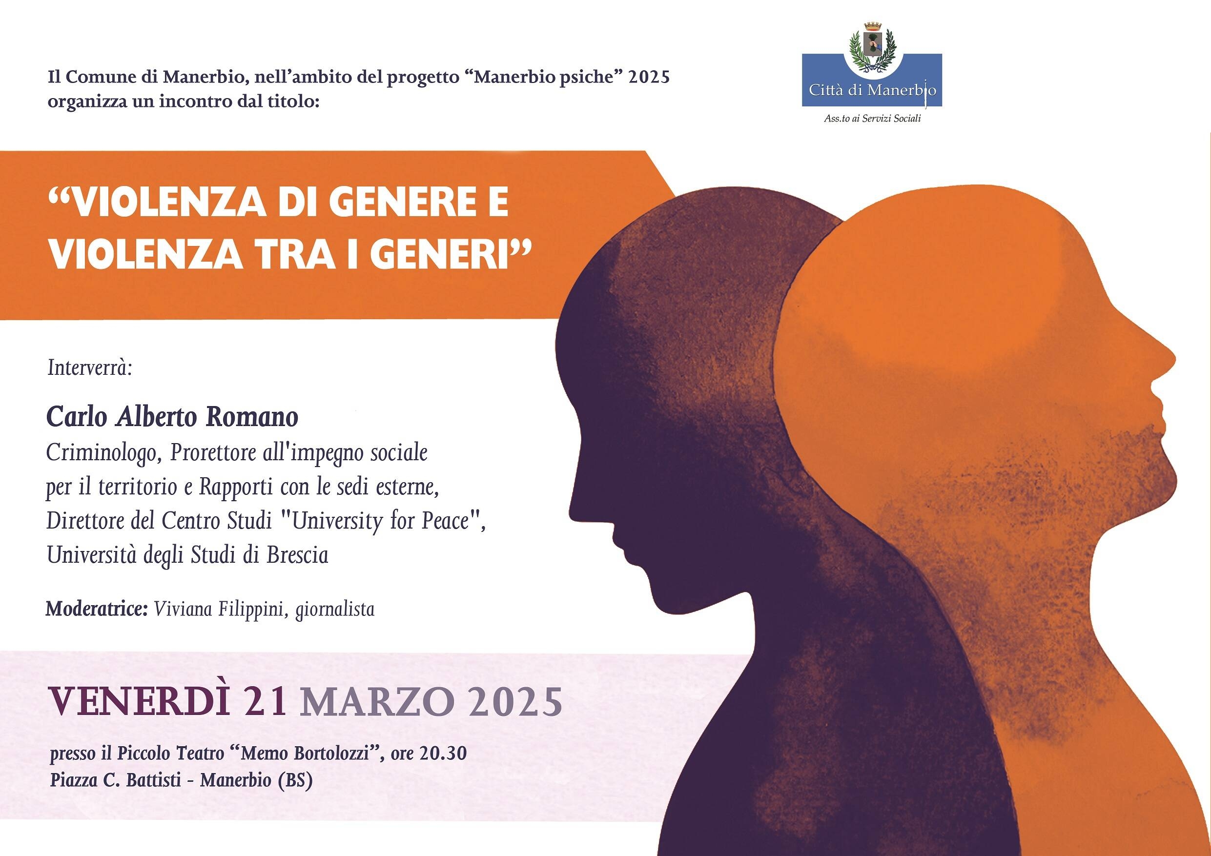 Il Comune di Manerbio, nell’ambito del progetto “Manerbio psiche” organizza un incontro dal titolo "Violenza di genere e violenza tra i generi".